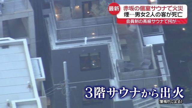 15日、東京・赤坂にある会員制高級個室サウナで火災が発生し、30代の男女2人が死亡しました。建物は5階建てで、全てサウナ施設として使用されています。「完全プライベートな空間」の提供を謳うこの施設は、著名人やサウナ好きの間で知られており、月額最高39万円の料金でサウナやヒノキ風呂などを楽しむことができます。警視庁によると、出火したのは3階にあるサウナ室で、当時煙が上がり、2人が意識を失った状態で発見されました。