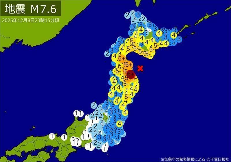 2023年10月8日午後11時15分頃、青森県東方沖でマグニチュード7.6の地震が発生しました。この地震は北海道から関東にかけて広範囲に影響を与え、青森県八戸市では最大震度6強を観測しました。震源の深さは約50キロメートルであり、地震による強い揺れが北海道、青森県、岩手県、宮城県などで観測されました。特に津波の恐れが指摘され、気象庁は迅速に注意を呼びかけました。