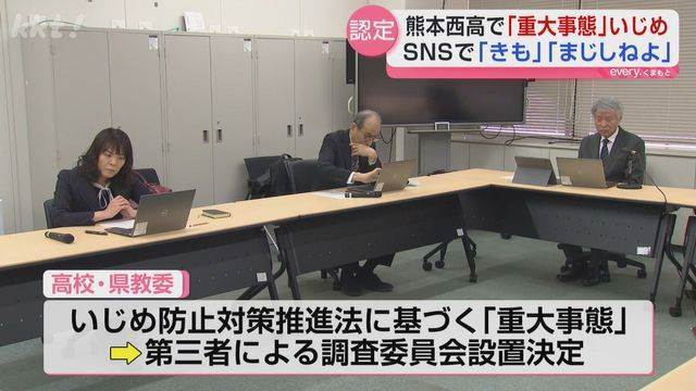 熊本県立熊本西高校で発生したいじめ事件において、2025年7月から9月にかけて女子生徒が複数の同級生からLINEでの誹謗中傷や合成写真の拡散などのいじめを受け、保護者を通じて学校に訴えたことで事態が明らかになりました。学校側は約3か月の調査後、加害者側から謝罪を行う場を設けましたが、その日の夜に女子生徒が精神的ショックから大量服薬を行い、入院する事態となりました。県教育委員会と学校はこれを「重大事態」と認定し、弁護士など第三者を交えた調査委員会の設置を決定。また、校長は生徒の心のケアと生活の支援を表明しました。
