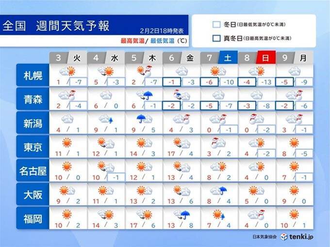事件概要:2日夜から3日明け方にかけて、日本各地で異常気象が予測されています。北海道では雪が強まり、局地的に警報級の大雪となる可能性があり、交通への影響やなだれに注意が必要です。また関東では大気の状態が非常に不安定となり、落雷やひょうが発生する恐れがあります。4日から6日にかけて寒さが一時和らぎ、南西部では気温が最大17℃に達するものの、積雪地域では雪解け災害に注意が求められます。7日から再度寒気が流れ込み大雪が予測され、全層なだれや道路冠水のリスクが高まります。雪解け後の災害防止や運転注意が重要です。