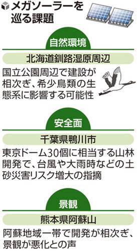 2、27年からでは遅すぎる。釧路湿原のメガソーラー建設でも問題になったように、既存のメガソーラーの中にも森林法や土地計画法に基づく開発許可を得ていなかったり、住民説明会で理解を得られていないものも多いはず。そうしたものに関しては即時固定価格の適用除外とすべき。