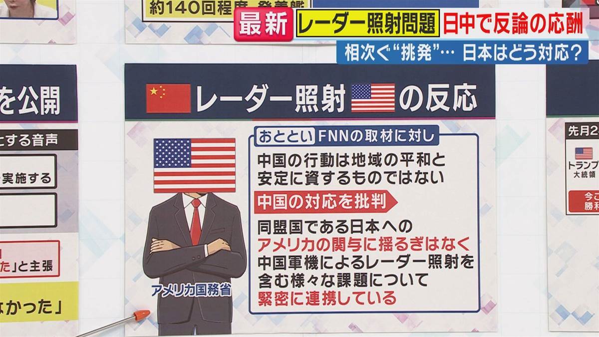 4、ホワイトハウスや米国防省は具体的なコメントは出していないものの、在日米軍最高司令官は「極めて危険な行為」であることを指摘、またニュージーランドとの共同演習中に同様のレーダー照射を受けたことがあるオーストラリアは日本の見解を支持している。我が国と中国とのやり取りをいくら続けても、所詮、水掛け論。重要なことは国際的な支持を得られる様な外交政策を並行して行うことが重要であると思う。
