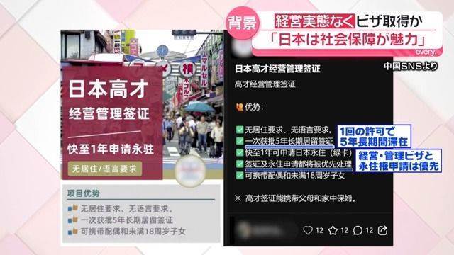外国人に対する「経営・管理ビザ」の不正取得問題が日本全国で浮上している。調査報道によると、大阪市内や東京都練馬区、荒川区の建物では、多数のペーパーカンパニーが登記され、企業活動の実態が見られないものが多かった。審査官が対面調査を実施した結果、疑わしい事例が発覚し、背景には、簡易な資本金要件やSNSを経由した申請方法が存在した。実態調査を進める中、専門家は「信用調査が行われていない会社が多い」と指摘。政府は資本金要件を引き上げる規制を導入したが、駆け込み申請が相次いだ。さらに、不正問題は「帰化」「配偶者ビザ」などの新たな動きへと繋がり、外国人との適正な共生が求められている。