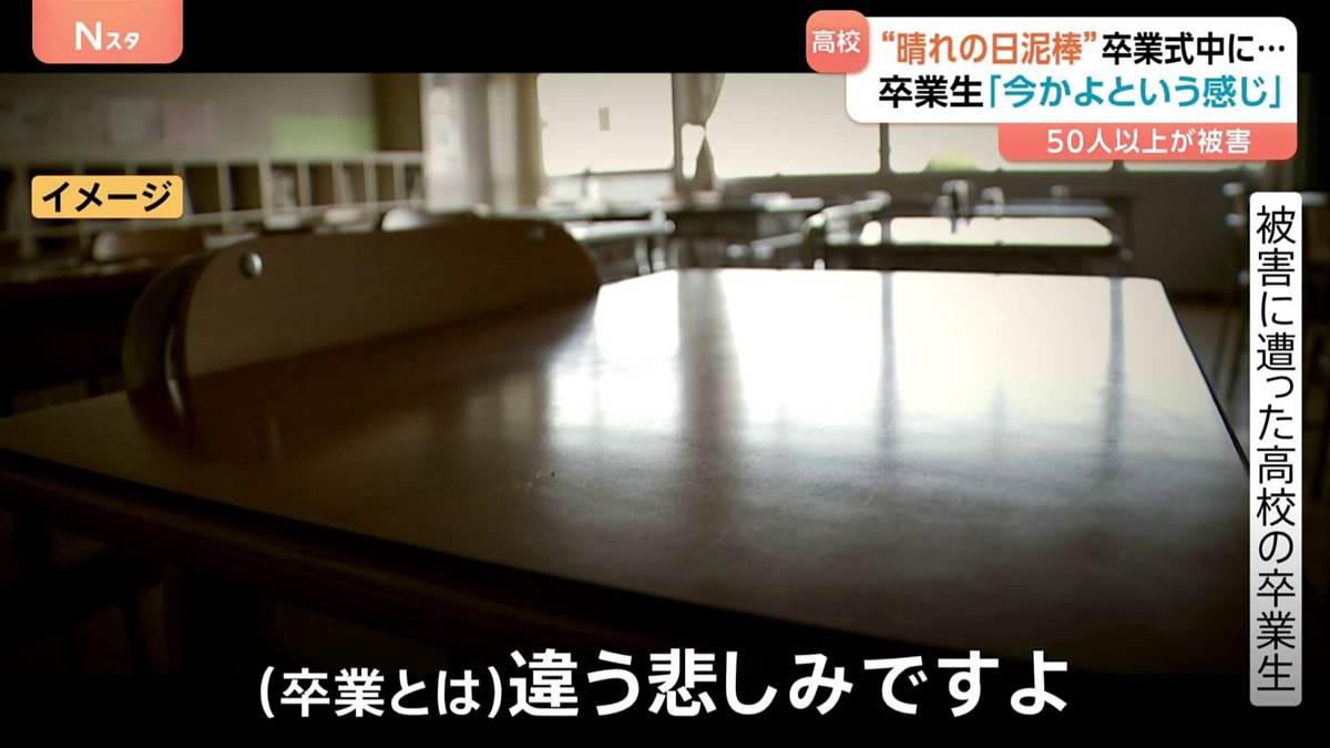 今月2日、宇都宮市の県立宇都宮白楊高校で卒業式の最中、生徒50人以上の財布から現金が盗まれる窃盗事件が発生しました。犯行は、教室に残されたカバンが狙われ、特にファスナーが開きやすいバッグが被害に集中しました。卒業式は体育館で行われ、被害発生場所の教室は無人で出入口に鍵がかかっていませんでした。学校側は事件直後に警察へ被害届を提出し、再発防止を表明しました。警察は現在も窃盗事件として捜査を進めています。この事件により、門出の日が台無しとなった卒業生たちは怒りと悲しみに打ちひしがれています。