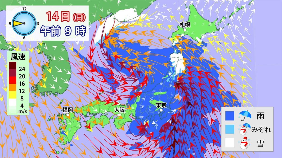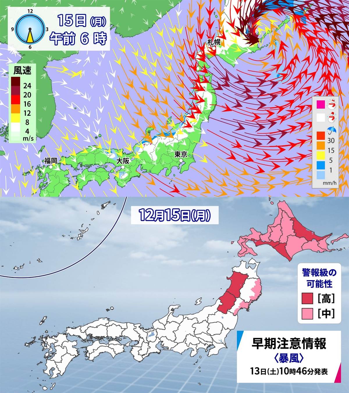 特に北陸と北日本では35メートルの風速が予想され、新幹線や航空便の乱れ、大雪による交通障害が懸念されている。