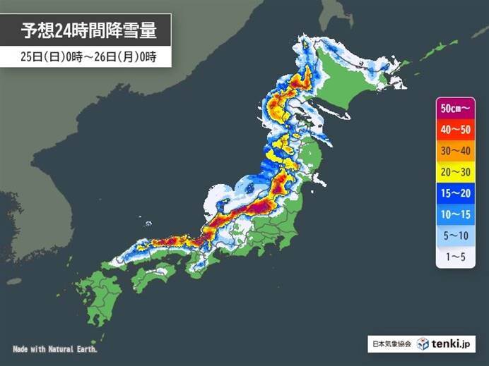 12月25日、強い冬型の気圧配置の影響で、北日本から西日本の日本海側にかけて大雪が予想されています。山沿いだけでなく、普段雪が少ない平野部や太平洋側でも雪が降る可能性があり、積雪や路面凍結による交通状況の悪化へ注意が必要です。北陸や岐阜県では短時間での急激な降雪の影響で、公共交通機関や道路が混乱に陥る恐れがあります。また、雪崩や着雪による倒木や電線断線なども懸念され、注意を呼びかけています。特に大阪や名古屋など、雪に慣れない都市部への影響が予期されており、十分な準備が求められています。