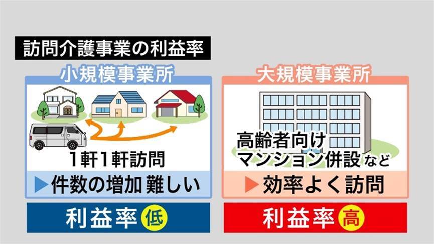 4、在宅介護が理想ではあるけど、難しくなってきているのが現実。特に僻地の訪問介護は移動に時間がかかり過ぎるので、担う事業所やヘルパーさんに負担がかかり過ぎる。移動に1時間かかって、1時間ケアしても1時間分の算定しかできない。都市部のサービス付き高齢者住宅なら2時間あれば2件訪問でき2時間分の算定ができる。働く方もボランティアでやってるわけじゃないから仕方ない。