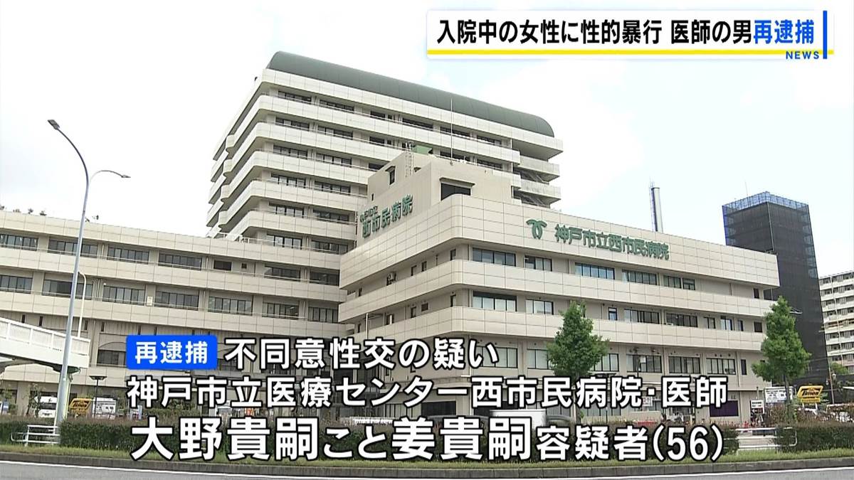 8月上旬、神戸市立医療センター西市民病院に勤務する医師・姜貴嗣容疑者(56)が、入院していた30代女性患者に対して診察と称し性的暴行を加えた疑いで再逮捕されました。容疑者は以前から同じ患者に対しわいせつ行為を行っており、すでに逮捕されていましたが、女性側のさらに詳細な聞き取りによって新たな容疑が発覚しました。姜容疑者は調べに対し「医療行為として行ったもの」と容疑を否認しています。