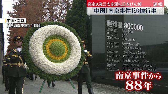 中国の南京で12月13日に行われた南京事件の追悼行事では、旧日本軍が多くの中国人を殺害したとの歴史的事実に対する反省と、軍国主義の復活を許さないというメッセージが発信されました。今年は「抗日戦争勝利80年」という節目でもあり、各地で関連行事が行われています。高市首相による台湾有事をめぐる発言を受け、中国共産党幹部は日本を批判し、戦後秩序を変更しようとする企みは成功しない旨を表明しました。