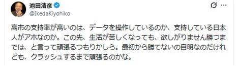 2、この学者先生は戦後の昭和30年代から40年代に学生時代を過ごされて、左翼思想を語れないとインテリ学生ではないとの選民主義にどっぷりお浸かりになられて早稲田の教授になられたお方です。時代は変わり今の若い世代には旧態依然のオールドメディアなどは信用はしていません。ご自分の期待した世論調査の数字でなかったのでご不満でしょうが、現実は常に変化していくものです。