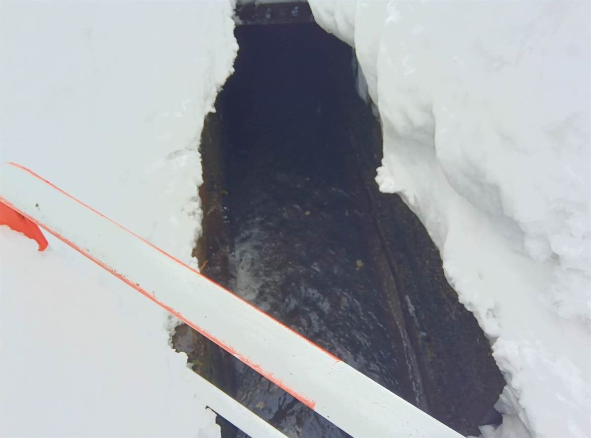 4、流雪溝投入口のヒンジの付いたグレーチングを開けて、雪を投入しているのを作業を見ると単純に怖いなと思います、業務で行ってるのなら安全対策もしてるでしょうが、一般の人の日常作業だから安全意識はまちまちだろうし、流雪溝の途中で雪が詰まり流水が溢れる事もあり、途中にスクリーンを設けるのも難しいらしい、2人が無事である事を願います。