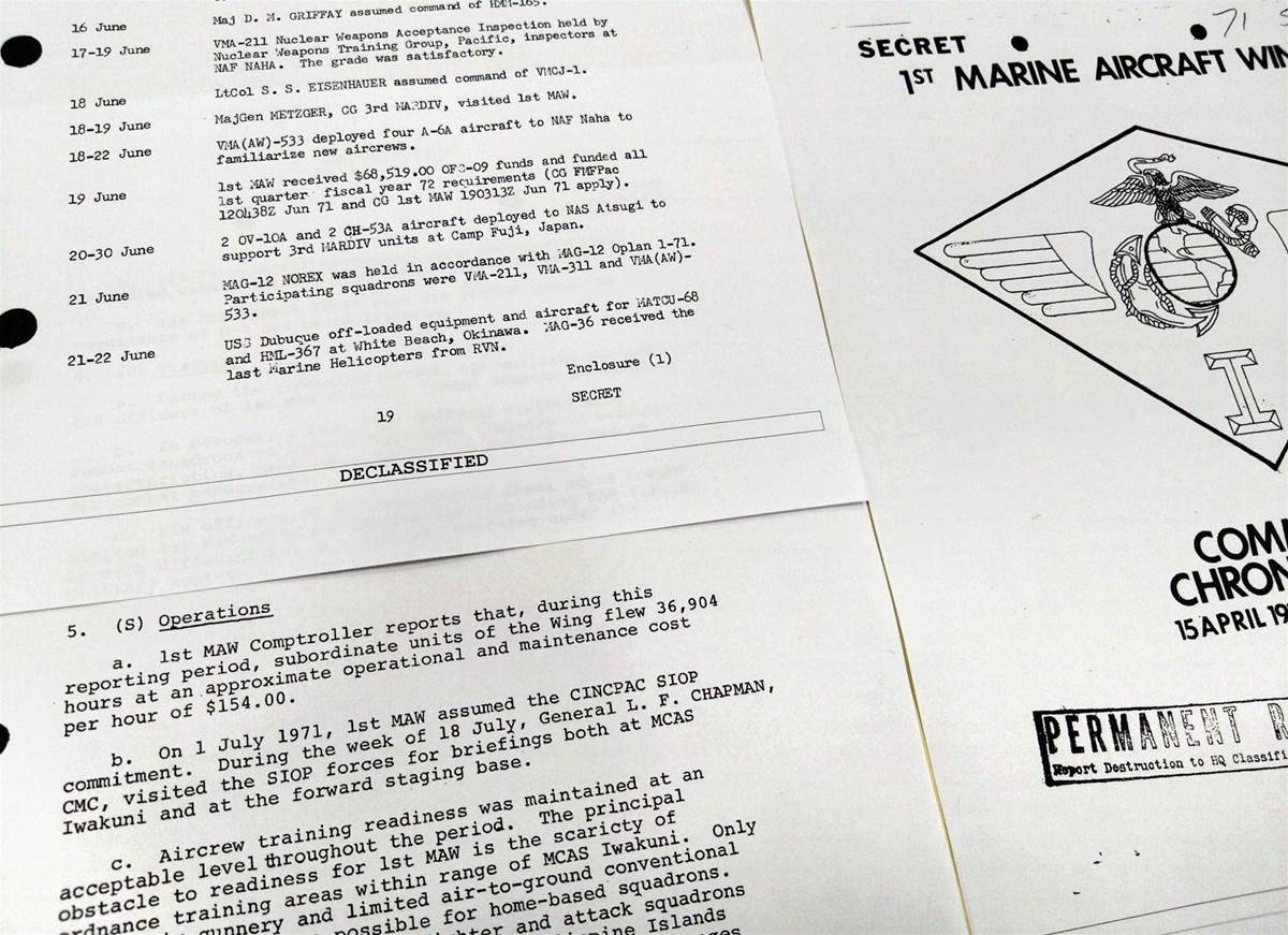 1970年代の冷戦期に、米国の核戦争計画に基づいて、在日米軍が沖縄で模擬水素爆弾の投下訓練を行っていたことが、最近機密解除された米公文書で明らかになりました。この訓練は、1971年から1974年にかけて実施され、返還後の沖縄で続けられていました。岩国基地の第1海兵航空団を中心に、那覇の米軍施設(現在の那覇空港)に航空機が頻繁に移動し、核搭載の手順を確認しながら沖縄本島周辺で訓練を行いました。