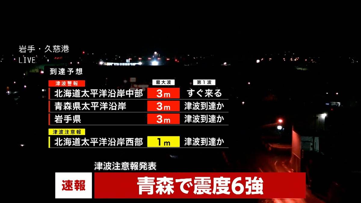 2、深夜の6強!冬の生活インフラ停止は即生命に関係します、すぐに自衛隊の派遣を!現地の方は暖かくしてください!津波注意報から警報に切り替わりました、沿岸部の方は恥じずに避難を!