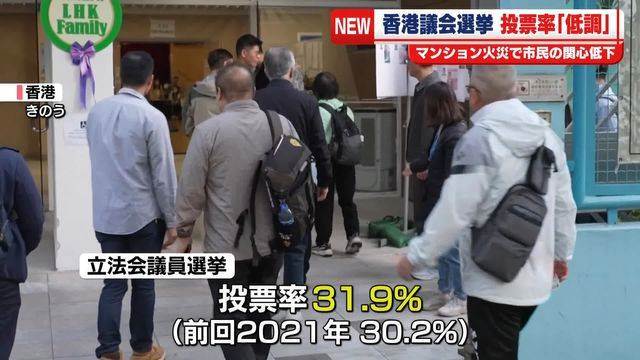 香港で7日に実施された議会選挙では、中国に親和的な親中派が議席を独占する見込みとなりました。投票率は31.9%にとどまり、前回の過去最低を上回ったものの依然として低調です。2021年以降、立候補には政府への忠誠心を示す条件が付けられ、民主派政党が排除される形となり、親中派の独占体制が続いています。さらに、高層マンション火災の影響で選挙運動が控えられ、市民の関心が薄れたことも投票率低下の一因とされています。