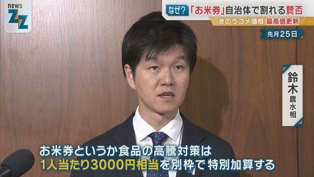 1、高くて新米が売れずに販売業者の倉庫に山積み在庫。おこめ券など配布したら、販売業者は価格を下げません。専門家もお米は下がると予想しています。電気、水道代の補助を多くすれば良いと思います。ポイント還元でも良いですが、お米だけをポイント還元の対象にすれば、米価格は下がりません。販売業者の中には資金繰りで困っている業者も多く、米価格を下げるには、お米にこだわらない事です。来年になれば、業者も売れない事を危惧して高価買い取りはしなくなると思います。今はその分を電気、水道代等の補助を多くすれば良いと思います。