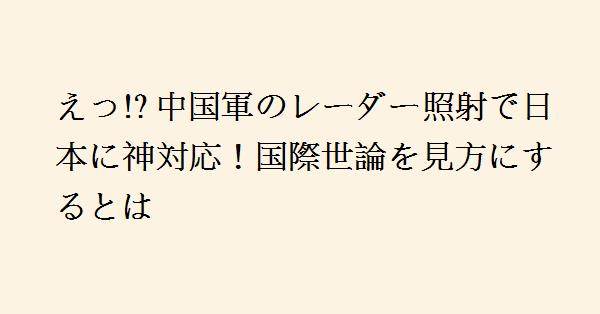 えっ!? 中国軍のレーダー照射で日本に神対応!国際世論を見方にするとは💥