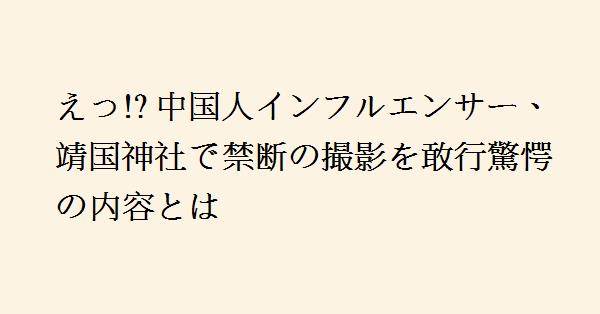 東京・靖国神社で、中国の女性インフルエンサーが無許可で「遊就館」内部を撮影し動画を公開したことが問題となっている。この動画は12月4日までにSNS「抖音」とYouTubeで配信され、戦没者への慰霊儀式の展示や戦争に関する歴史紹介を含む内容だった。インフルエンサーは動画内で、日本の歴史観に対して批判的なコメントを添えており、靖国神社は撮影許可をしていないと回答している。
