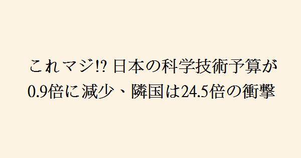 1、今から50年前の我々が子供の頃、日本は猿真似日本と呼ばれていました。学校でも基礎研究が足りない!と教えられ多くの子供たちがアトムなどの漫画に触発され研究者を目指したものです。沢山の優秀な研究者が育ちノーベル賞を取り誇らしげに思いました。彼らの研究を元に他国が技術力を伸ばしています。日本が再び後塵を拝することのないよう研究費の増額と科学者の育成をお願いします。