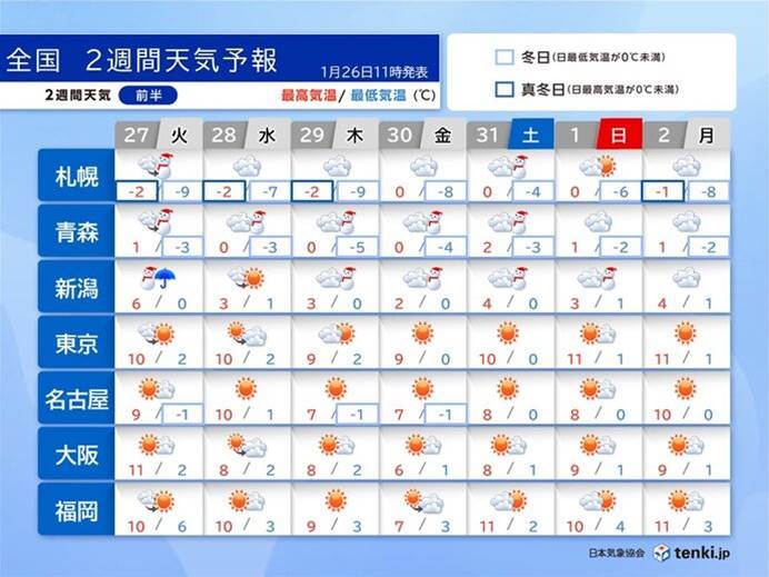 300字以内の概要:今シーズン最長の寒波が一旦収まりますが、29日(木)から再び強い寒気が流れ込み、日本海側で警報級の大雪となる恐れがあります。北海道から山陰までの範囲で雪や雨による落雪やなだれに注意が必要です。27日(火)に気圧の谷が通過し、再び冬型の気圧配置となるほか、2月初旬には南岸低気圧が発生する可能性も指摘されています。積雪地での雪害対策が必要であり、今後の天気情報や警報に十分な注意が求められています。