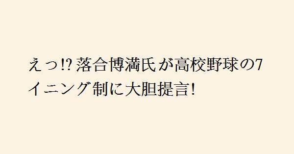 また、7イニング制になるとコールドゲームが3回になり、出場選手数が限定されるとの疑問を呈した。