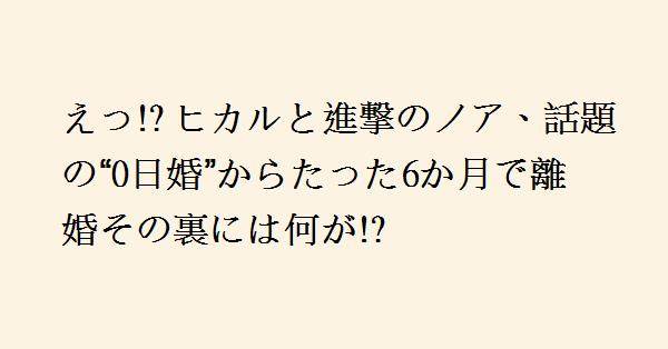 人気YouTuberのヒカルと実業家の進撃のノアは、今年5月31日に「0日婚」を発表しましたが、10月19日に離婚を公表しました。ヒカルは自身のチャンネルでノアと共に離婚を報告し、その理由として自身が「かき乱し続けた」と説明しています。結婚後の9月中旬にはオープンマリッジ(夫婦がお互いに他者との恋愛関係を容認する形)を選ぶと公表しましたが、ヒカルは「ノアに犠牲になってもらった」と告白し、ノアも「奥さんとしての立場では耐えられなかった」との考えを示しました。