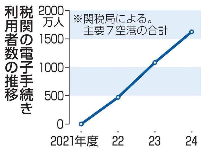 2月9日午後5時過ぎ、成田空港で帰国後の税関手続きにおいて電子手続きが著しく混雑し、多くの利用者に不満が生じた。電子手続きは従来の紙による有人ゲートよりも早いとされてきたが、結果的に多くの入国者が20分以上行列を待つ一方、紙の申告にかかる時間は5分程度であった。主な原因は、電子端末の数が有人ゲートより少ないこと、大型荷物を持った入国者が手荷物受取後に集中する構造的問題、そして午後5〜6時台の便の集中が挙げられる。財務省は一時的な対策として混雑時に有人ゲートへの誘導を行いつつ、2025年4月から「共同キオスク」の導入を拡大し、手続きの効率化を推進する方針を示している。