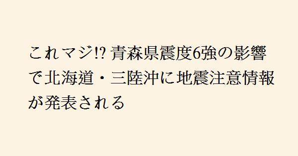 青森県で震度6強を観測した地震を受けて、気象庁と内閣府は「北海道・三陸沖後発地震注意情報」を発表しました。この情報は、北海道から千葉県までの7道県182の市町村を対象に、今後1週間の間に大規模な地震が発生する可能性が相対的に高まることを伝えています。国は事前避難を求めるものではありませんが、備えの見直しや揺れや津波を感じた際の迅速な避難を促しています。