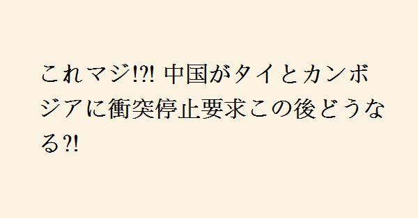 1、中国はもし仮に日本が同じ事を表明したら「内政干渉だ!」と怒りを露わにするだろうね。今、中国はタイやカンボジアに構っている余裕はあるのだろうか。我々中国人民は平和を望んでいるんだとでも言いたいのかな?自らの国の総領事が日本に対して侮辱的な発言を繰り返ししておきながらどの口が物を言っているのかと言いたい。