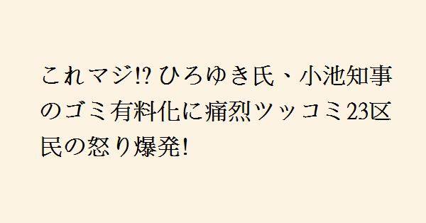 小池百合子東京都知事が23区で家庭ごみの有料化を検討していることについて、西村博之氏が批判を展開した。多摩地域での有料化による排出量減少を受け、23区での実施を視野に入れているとの内容に対し、西村氏は都民の税金が台場の噴水に26億円、プロジェクションマッピングに16億円使われていることを挙げ、「その結果、ゴミ収集は有料になります」と皮肉を述べた。