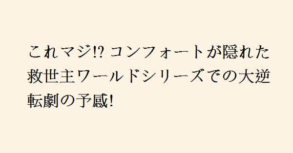 4、コンフォートさんにはレギュラーシーズン中に監督の采配が疑われる程にチャンスを与えて来た。しかし、期待に応えられない結果しか出していない。最長、7試合しかないワールドシリーズで結果を出す確率は極めて少ないでしょう。コンフォートさんの今シーズンは終わっていると言って良いと思います。