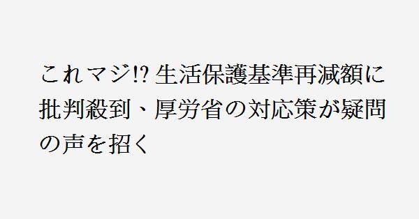11月21日、厚生労働省は2013~15年の生活保護基準引き下げを巡る対応策を発表しました。最高裁判所がデフレ調整を違法と判断したことを受け、追加支給と新方式による再減額を組み合わせました。これにより約300万世帯が対象で、総額約2000億円の支給が行われる予定です。原告には特別給付も行われますが、「再減額決定」「一部補償」といった複雑な構造と特別給付の分離が批判されており、対応策の複雑さが理解を阻むと指摘されています。