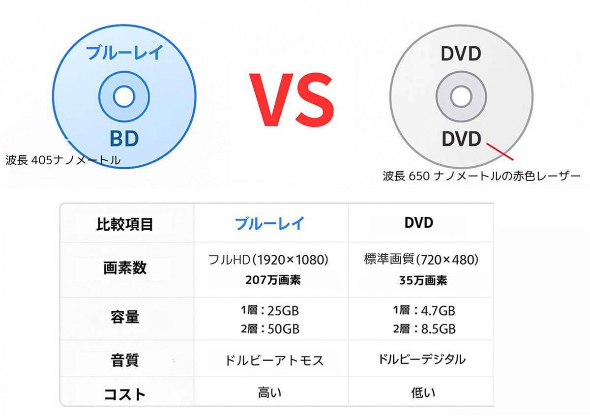 2、もはや配信一強の世界になりつつある中、Blu-rayディスクパッケージを買うのは趣味人であり、テレビの録画やその他データの保存媒体としての使い道も、HDD内臓や記事中の大容量メディアを考えれば、今後の市場が限定的なのは察しがつくただ、それなりに大きなテレビを持っていると、パッケージで販売されているDVDは粗が目立つし、音圧もBlu-rayと比べてだいぶ違う画質を決めるのは媒体に乗っかるデータによるというが、現状の映像商品パッケージではBlu-rayに優位性がある 記録媒体としてのDVDがBlu-rayより安く耐久度が高いのはその通りだと思う