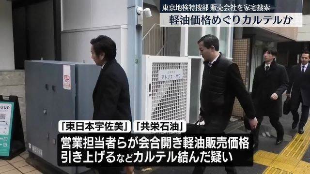 東京地検特捜部は、独占禁止法違反の疑いで、東京都文京区の「東日本宇佐美」と江戸川区の「共栄石油」を家宅捜索しました。この2社は運送業者向けに軽油を販売しており、関係者の証言によると、営業担当者らが定期的に会合で軽油価格を引き上げるカルテルを構築した可能性があります。特捜部は、押収された資料の分析を進めるとともに関係者から事情を聴いて実態解明を目指しています。また、公正取引委員会は昨年、これらの企業に対し強制調査を行った経緯があります。