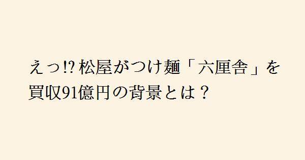 1、吉野家がせたか屋を傘下に入れてラーメンを出して好評だから追従したところもあるでしょう松屋でつけ麺やラーメンメニューを出したり六厘舎系列の店舗の売上を考えたら91億でも元は取れると思う