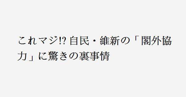3、自維連立政権で維新が「閣外協力」である事は、もしも自維連立で政策面での擦り合わせが不可能であったり、自民が維新からの連立条件である「議員定数削減」等を遵守•実現しなかった場合には、いつでも自維連立は解消出来るからではないかと思います。
