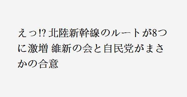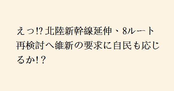北陸新幹線の敦賀以西の延伸ルート選定をめぐり、自民党と日本維新の会の連立政権下で初の整備委員会が開かれました。2016年に「小浜・京都ルート」が既に選ばれていたものの、維新は新たに8つのルート案も再検証するよう求めました。委員会は2時間にも及び、最終的に維新の主張を聞き入れ、8ルートの再検証をすることに合意しました。これに伴い、国土交通省や関連JR会社からデータの提示と検討が求められ、ヒアリングも行われる予定です。