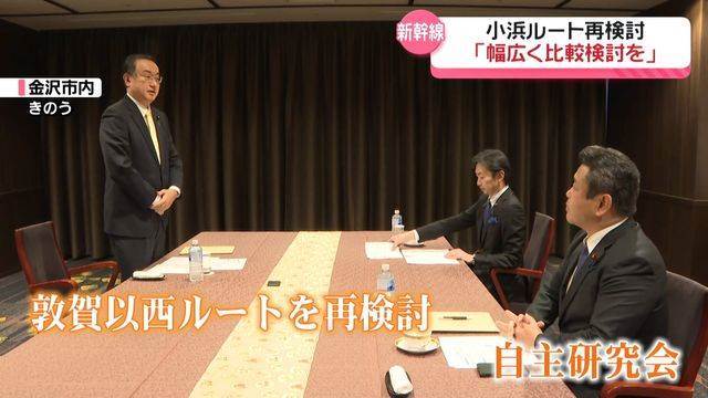石川県の自民党関係国会議員が取りまとめた自主研究会は、北陸新幹線の敦賀以西の延伸に関する中間報告を発表しました。この報告では、現行の小浜ルートの費用対効果が0.55となっており、一般的に求められる1を大きく下回っていることが指摘されています。米原ルートや湖西ルートの方が高い費用対効果を示しているため、小浜ルートの着工条件を満たす可能性が低いとされています。