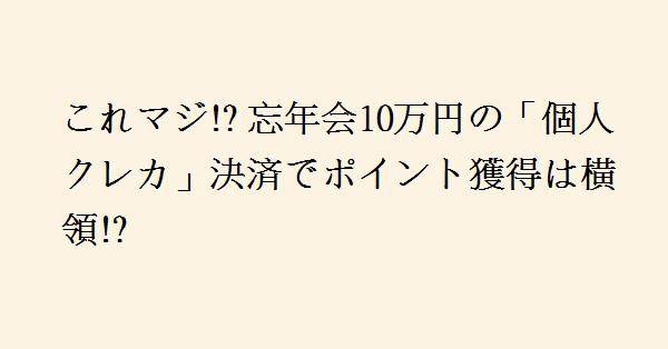 2、会社から忘年会費用として10万円を現金支給されていれば、又は法人カードを渡されているなら、それを使わずに自分のカードで決済すればまずいけど、立て替え負担を強いているならポイントは別にいいんじゃないかと思う。