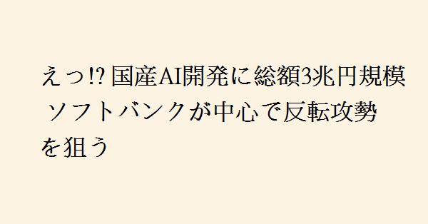 日本では官民共同で総額3兆円規模の国産AI(人工知能)開発計画が進行中です。2024年春にソフトバンクなど十数社が出資して新会社を設立し、26年度から政府が5年間で約1兆円を支援する方針です。