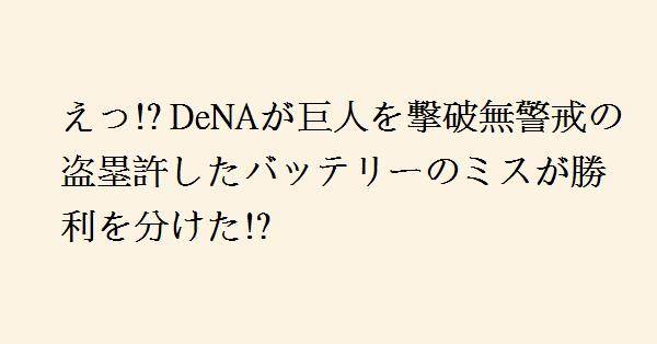 試合の焦点は、石上泰輝が盗塁を成功させたシーンであり、DeNAが勢いを得て、さらに続く打線で勝利を決めたことだ。巨人バッテリーの盗塁に対する警戒心の欠如が結果に影響を与えたとの指摘がなされ、元DeNAヘッドコーチの高木豊氏がバッテリーを批判した。