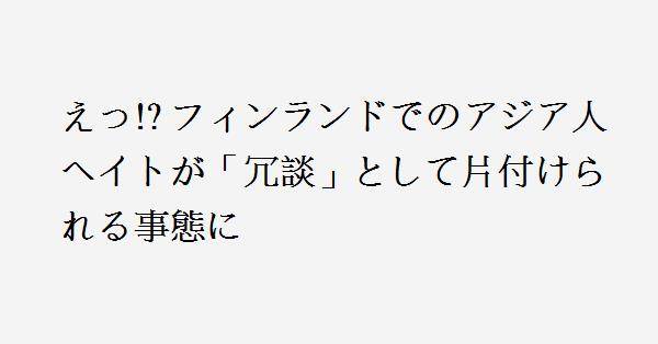 3、日本人の多くが、フィンランドは差別が少ない人権意識が高い国と思っていたはずです。だからとても驚きましたフィンランドの副代表をまで務めた国会議員や子どもの権利を守る協会代表、EU議会議員、人権大使、駐日大使に至るまで吊り目ポーズは差別ではないと断じていて、それを行ったことに後悔すらないのですから国家単位でリアル差別主義を見ましたよフィンランドは差別が無い国ではなく差別を差別と認識できない人たちの国なんです21世紀の先進国であるハズの国でこうなのですから、差別が無くならないハズですね悲しいなあ