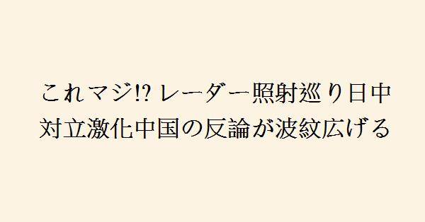 4、>中国外務省の報道官は、日本に対して「中国の通常の軍事演習や訓練を妨害する危険な行動」を直ちに停止するよう求めた。いやいや、日本公海上で軍事演習を行うからスクランブルしなきゃいけない事態になる。自国近海で軍事演習しとけば何一つ問題ない話。それ以上にレーダー照射をすること自体が大問題。事実を完全に捻じ曲げているのは中国自身のほう。オーストラリア国防大臣が来日している中で、よくもこのような挑発行為を行ったものだ。引き続き日本政府は冷静に世界に中国の状況を示し、立場を理解してもらうように努めてほしい。そうでなければ自衛隊の皆様にも申し訳が立たない。