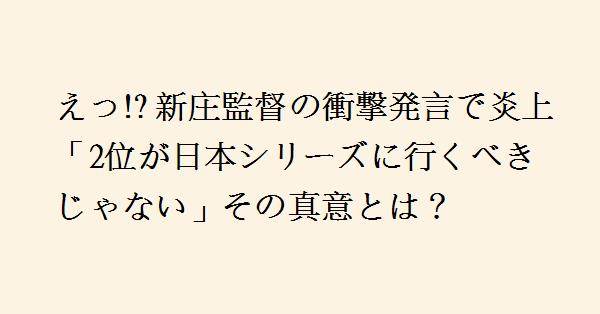 2、自分も日本シリーズは1位同士が戦うのが古き良き伝統だと思っている。ただ、時代の流れや創意工夫があって今の形があるのも正しいこと。いろんな思いをもった人がいるからこそ、新庄は、次はリーグ優勝して、1位として堂々と日本シリーズに向かうよ、と言いたいのだと思っている。