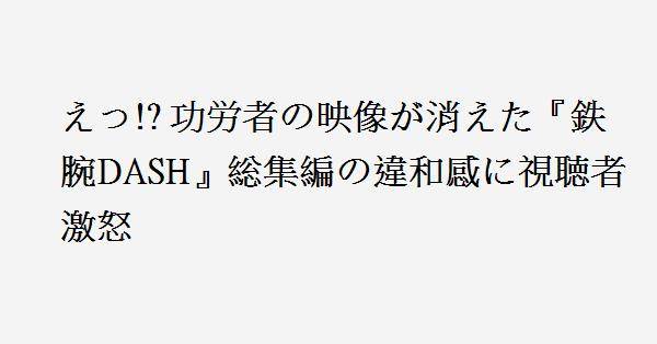 日本テレビの『ザ!鉄腕!DASH!!』放送30周年特別企画は、視聴者アンケートに基づく総集編を放送したが、TOKIOの元メンバーである城島茂、松岡昌宏のみの登場に視聴者から強い違和感が広がった。国分太一のコンプライアンス違反による無期限活動休止や、彼を巡る降板問題で、日本テレビ側と国分の対立が浮き彫りになり、さらに長瀬智也の映像すら使われていない編集に視聴者は不満を表明。