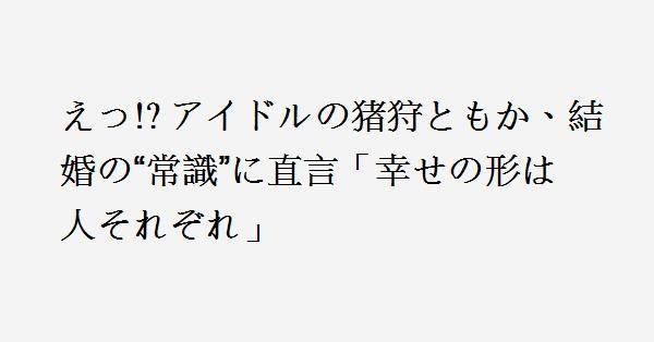 猪狩ともか(34)、アイドルグループ仮面女子のメンバーで、事故により脊髄を損傷し現在車いすで活動中。彼女は21日夜、SNS上で結婚に関する私見を共有した。タレント磯山さやか(42)がテレビ番組で独身に対する偏見に苦悩を告白したことを報じたオリコンニュースの記事を引用し、「結婚することだけが幸せではない」と人それぞれの人生を肯定するコメントを述べた。