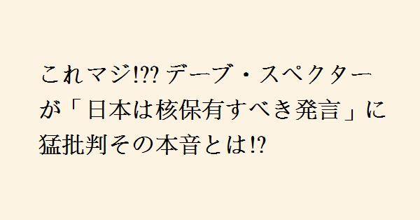 2023年10月21日、TBSの番組「サンデージャポン」に出演した放送プロデューサーのデーブ・スペクター氏が、政府高官の核保有に関する発言について批評した。発言者は東アジア情勢の緊張を背景として個人的見解としつつ「核は持つべきだ」と述べ、野党からは更迭を求める声が挙がっている。