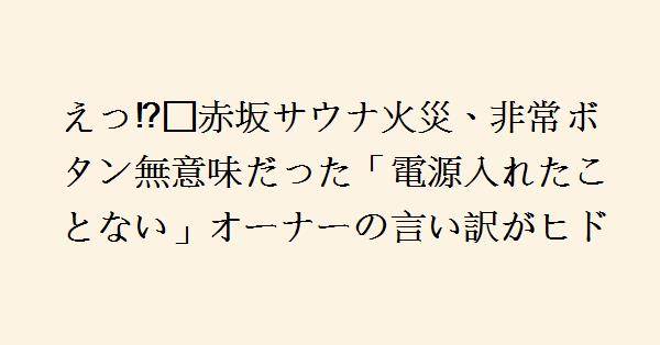 300字以内の概要:2023年10月15日、東京・赤坂の個室サウナ「SAUNATIGER」で発生した火災により、美容室経営の男性(36歳)とその妻(37歳)が死亡しました。警視庁の捜査で、非常ボタンの受信機が電源未接続で警報音が鳴らない状態だったことが判明。個室サウナのドアは内外共に壊れており、2人は部屋へ閉じ込められた可能性があります。