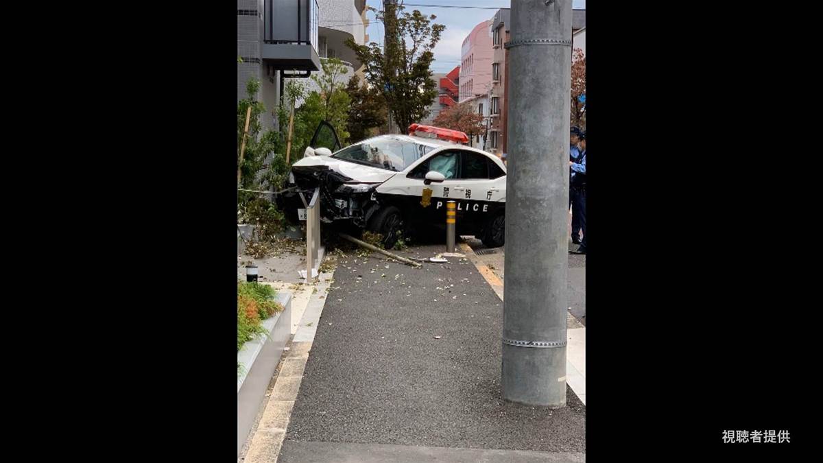 3、パトカーの壊れ方を見る限り、狭い道でノーブレーキで歩道に突っ込んでいます。明らかに居眠りか意識障害による事故ですね。歩行者や対向車がいなくて良かったですね。