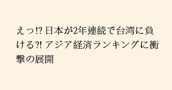 一方、アジア第2位の経済大国である日本は、3万4720ドルで昨年に続き台湾を下回る順位となっています。