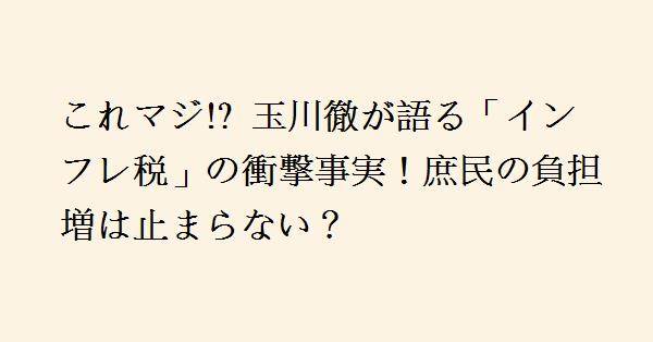 玉川徹氏がテレビ朝日「羽鳥慎一 モーニングショー」に出演し、インフレ税について言及しました。彼は番組内で、物価高が続くとの見通しを示しました。特に年末に物価高に苦しむ人々を取り上げる中で、長期金利が2.1%であること、円の安さが続き物価が上がること、物価上昇に伴い金利を上げざるを得ないことを説明しました。そして「インフレ税」という言葉に触れ、インフレが進行することで実質的に税金を払っているのと同じ状況にあると述べました。